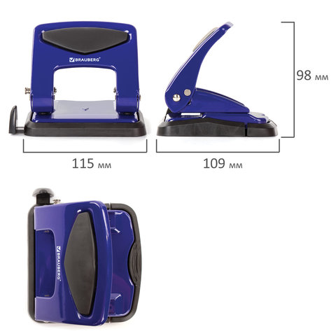 Дырокол металлический BRAUBERG "PN-150M", до 35 листов, синий, 227789