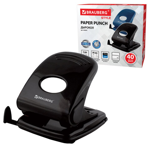 Дырокол металлический BRAUBERG "Style", до 40 листов, ассорти (синий/черный), 220947