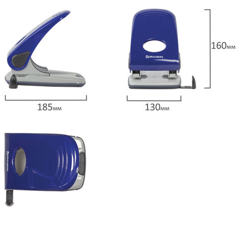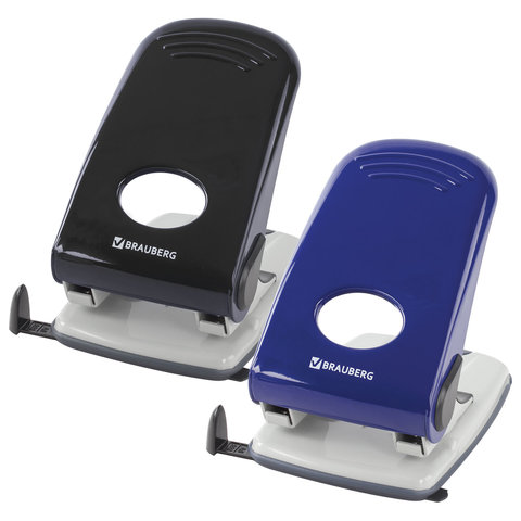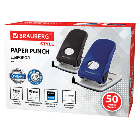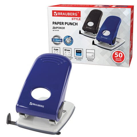 Дырокол металлический BRAUBERG "Style", до 50 листов, ассорти (синий/черный), 221278