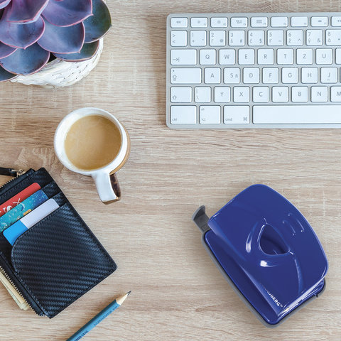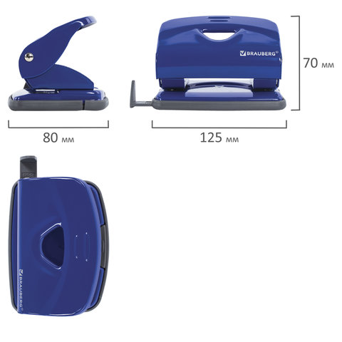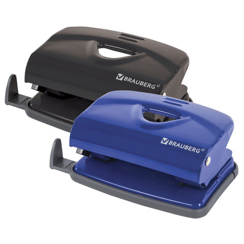 Дырокол металлический BRAUBERG "Universal+", до 20 листов, ассорти (синий/черный), 222525