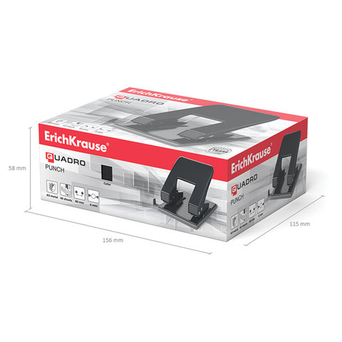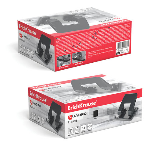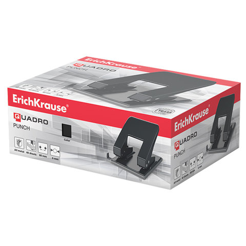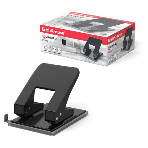 Дырокол металлический ERICH KRAUSE "Quadro", до 40 листов, черный, 4669