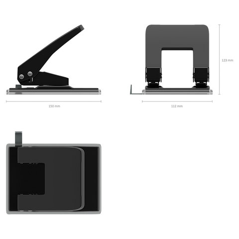 Дырокол с резервуаром для конфетти и линейкой для выбора форматов. листов. Корпус и механизм изготовлены из высококачественной стали. Гарантия на механизм 2 года. Имеет встроенный фиксатор, позволяющий хранить дырокол в сложенном положении.