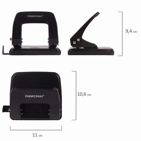 Дырокол металлический ОФИСМАГ – это необходимый офисный предмет, с помощью которого можно аккуратно пробивать отверстия в бумаге и затем подшивать документы в папку.