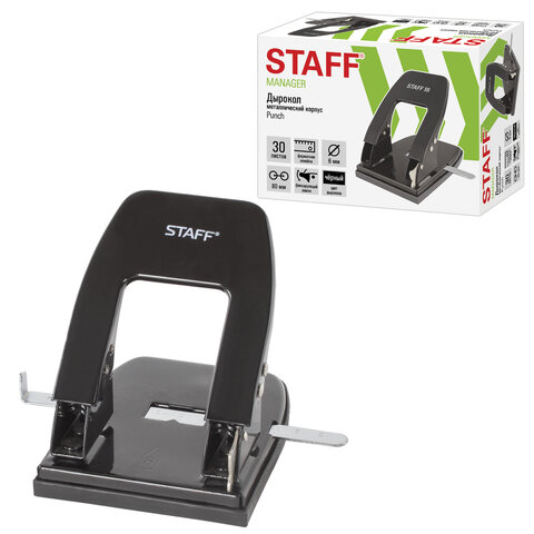 Дырокол металлический STAFF "Manager", до 30 листов, черный, 224650