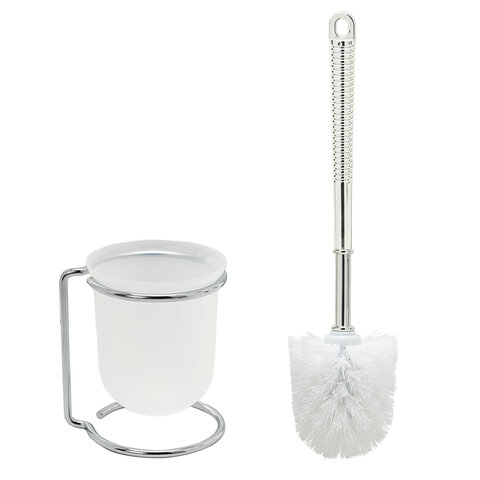 Ершик для унитаза с подставкой, маталл + пластик, хромированный, LAIMA, 607426