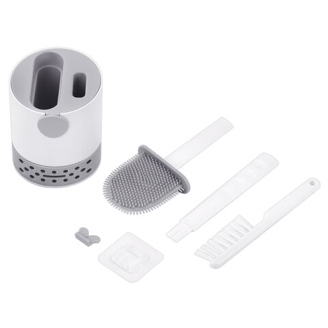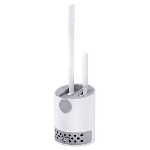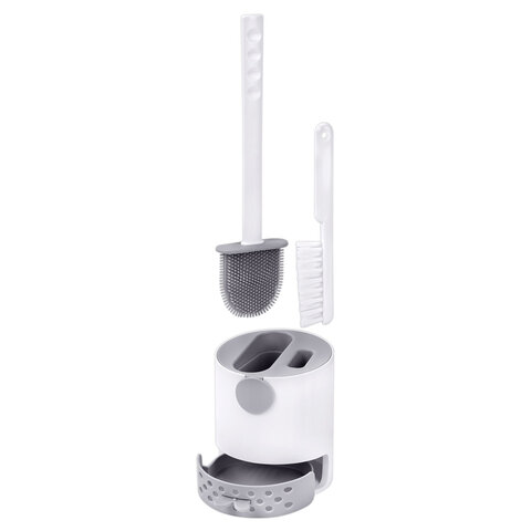 Ершик для унитаза силиконовый (плоский) + щеточка, напольный / настенное крепление, LAIMA, 700561