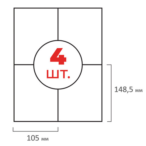 Этикетка самоклеящаяся 105х148,5 мм, 4 этикетки, белая 70 г/м2, 50 листов, ОФИСМАГ, сырье Финляндия, 115197