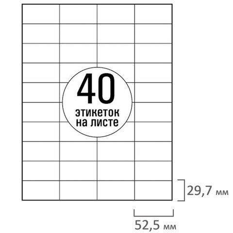 Количество этикеток на листе 40