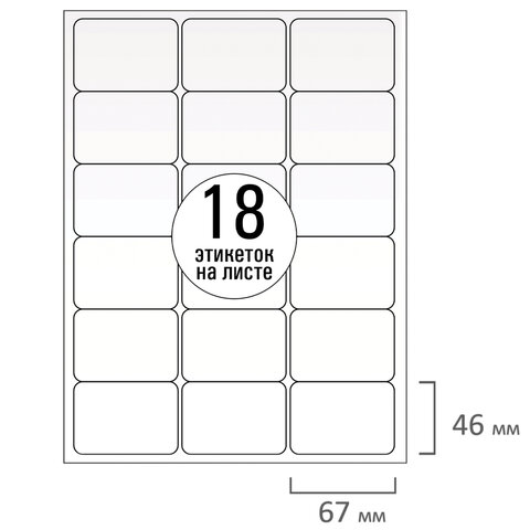 Этикетка самоклеящаяся 67х46 мм, 18 этикеток, белая, 70 г/м2, 50 листов, TANEX, сырье Финляндия, 114535, TW-2067