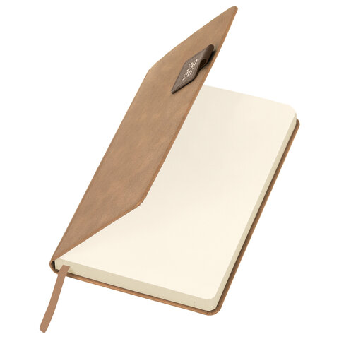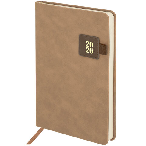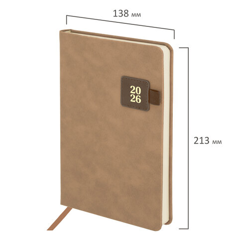 Ежедневник датированный 2026 А5 138х213 мм, BRAUBERG "Accent", под кожу, держатель, бежевый/коричневый, 117388