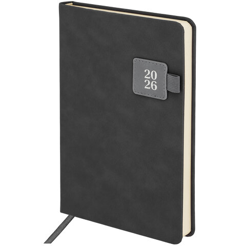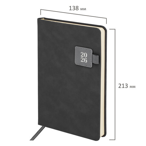 Ежедневник датированный 2026 А5 138х213 мм, BRAUBERG "Accent", под кожу, держатель, серый, 117385