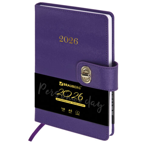 Ежедневник датированный 2026 А5 138х213 мм, BRAUBERG "Elegant", под кожу, застежка, фиолетовый, 117370