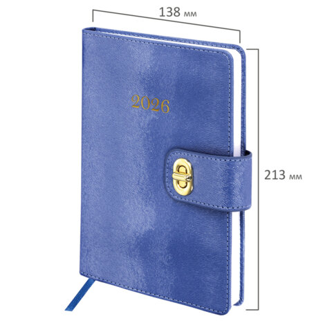 Ежедневник датированный 2026 А5 138х213 мм, BRAUBERG "Elegant", под кожу, застежка, темно-синий, 117366