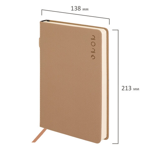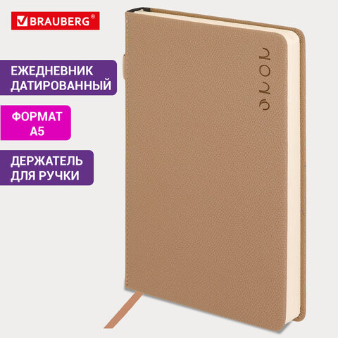 Ежедневник датированный 2026, А5, 138х213 мм, BRAUBERG "Essential", под кожу, держатель, бежевый, 117396