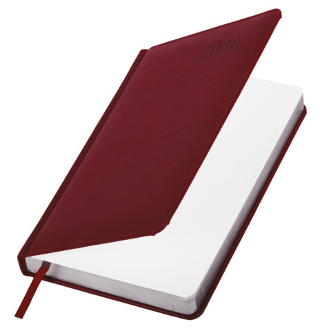 Ежедневник датированный 2026, А5, 138х213 мм, BRAUBERG "Impression", под кожу, бордовый, 117512