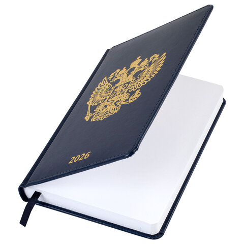 Ежедневник датированный 2026 А5 138х213 мм, BRAUBERG "State", под кожу, синий, 117416