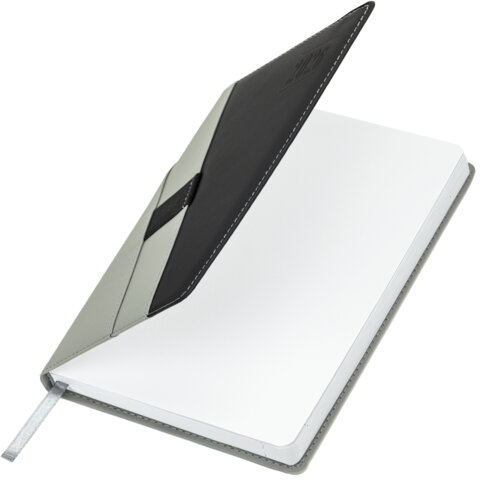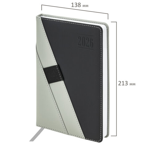Ежедневник датированный 2026, А5, 138х213 мм, BRAUBERG "Swirl", под кожу, держатель для ручки, серый, 117482
