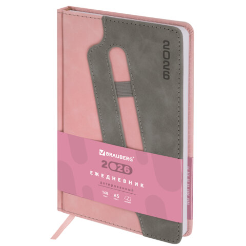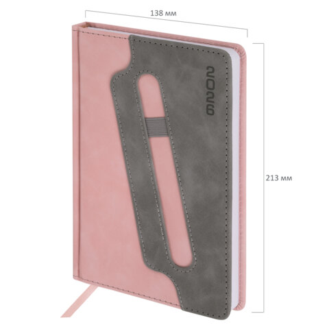 Ежедневник датированный 2026, А5, 138x213 мм, BRAUBERG "Assistant", под кожу, держатель, розовый, 117377