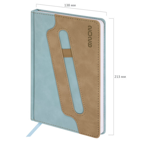 Ежедневник датированный 2026, А5, 138x213 мм, BRAUBERG "Assistant", под кожу, держатель, синий, 117375