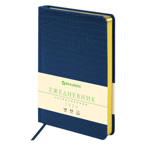 Ежедневник датированный 2026, А5, 138x213 мм, BRAUBERG "Comodo", под кожу, синий, 117050