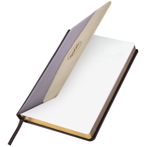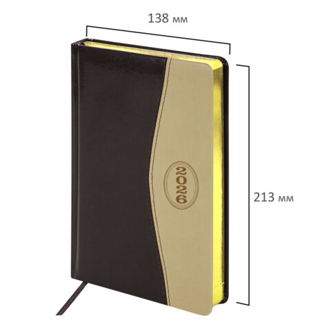 Ежедневник датированный 2026, А5, 138x213 мм, BRAUBERG "De Luxe", под кожу, коричневый/бежевый, 117053