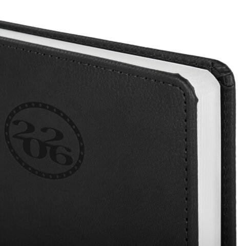 Ежедневник датированный 2026, А5, 138x213 мм, BRAUBERG "Favorite", под кожу, черный, 117037