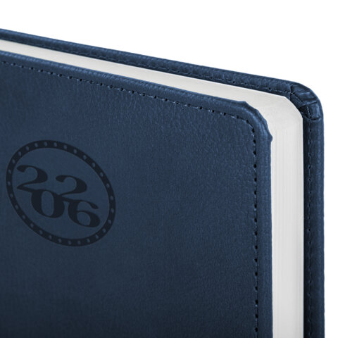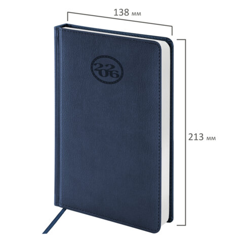 Ежедневник датированный 2026, А5, 138x213 мм, BRAUBERG "Favorite", под кожу, темно-синий, 117036