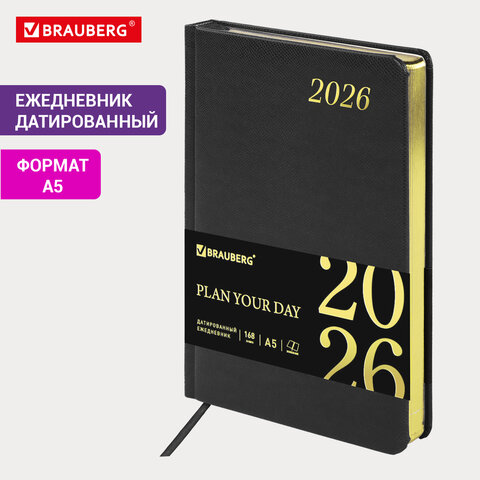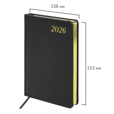 Ежедневник датированный 2026 А5 138x213 мм, BRAUBERG "Iguana", под кожу, черный, 117054