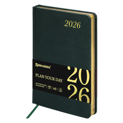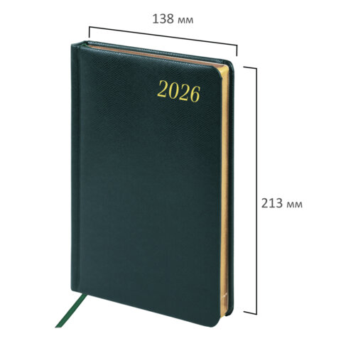 Ежедневник датированный 2026 А5 138x213 мм, BRAUBERG "Iguana", под кожу, темно-зеленый, 117058