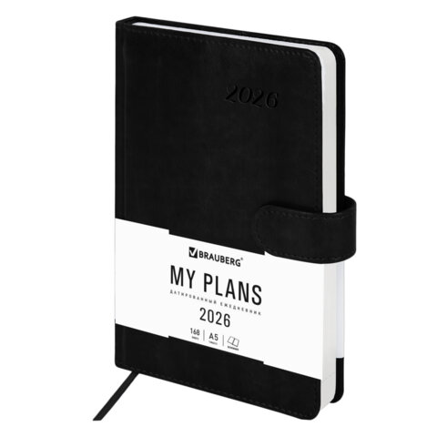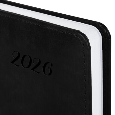 Ежедневник датированный 2026 А5 138x213 мм, BRAUBERG "Legend", под кожу, застежка, черный, 117070