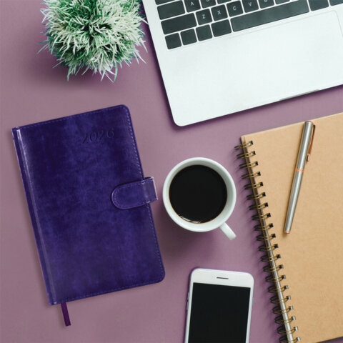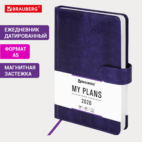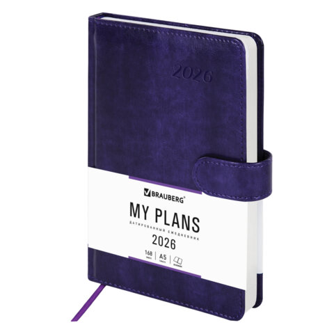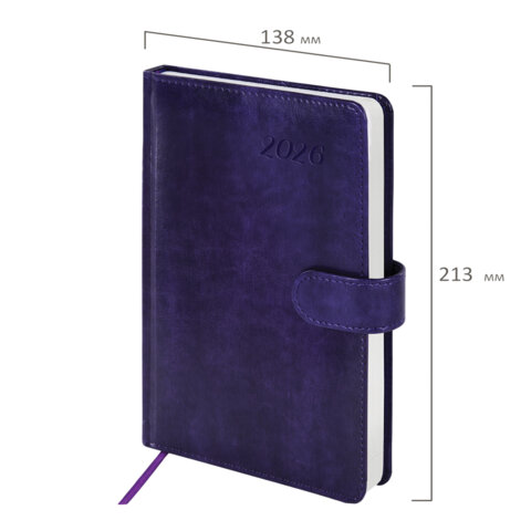 Ежедневник датированный 2026 А5 138x213 мм, BRAUBERG "Legend", под кожу, застежка, фиолетовый, 117069