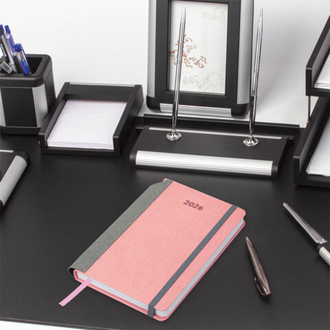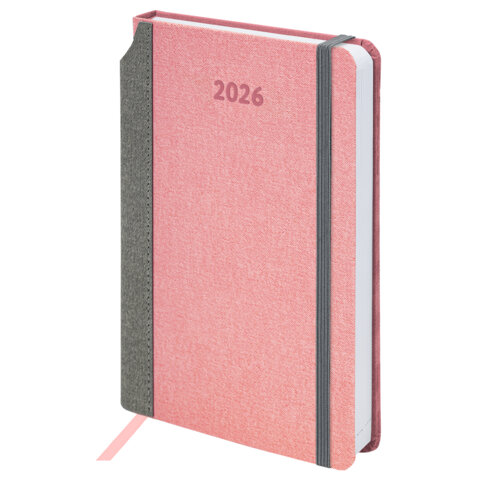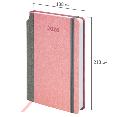 Ежедневник датированный 2026 А5 138x213 мм, BRAUBERG "Mosaic", под кожу, карман для ручки, розовый, 117115
