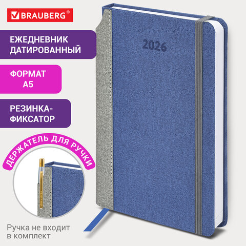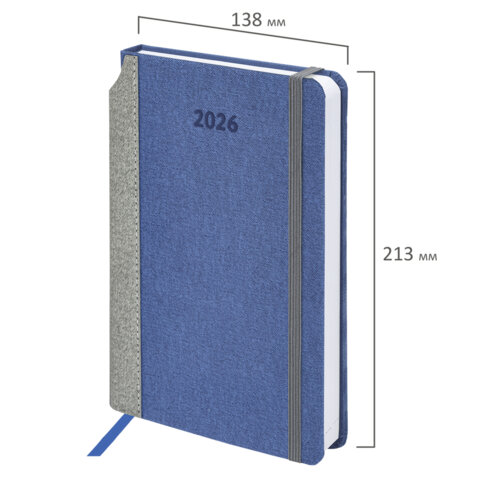 Ежедневник датированный 2026 А5 138x213 мм, BRAUBERG "Mosaic", под кожу, карман для ручки, синий, 117112