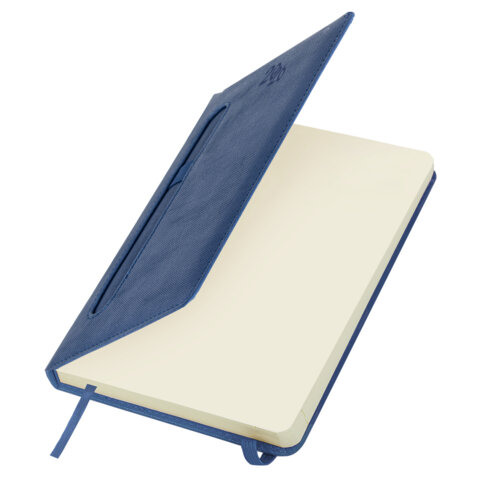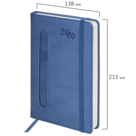 Ежедневник датированный 2026, А5, 138x213 мм, BRAUBERG "Optimal", под кожу, резинка, держатель для ручки, синий, 117464