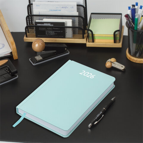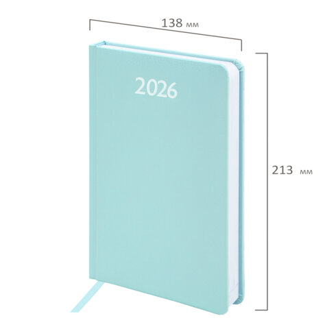 Ежедневник датированный 2026, А5, 138x213 мм, BRAUBERG "Profile", балакрон, мятный, 117074