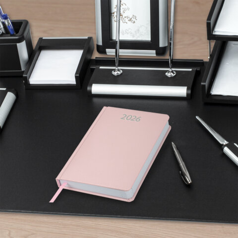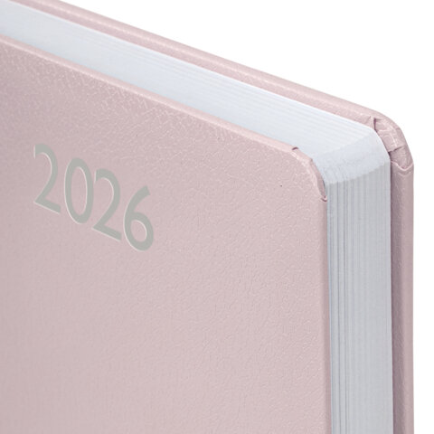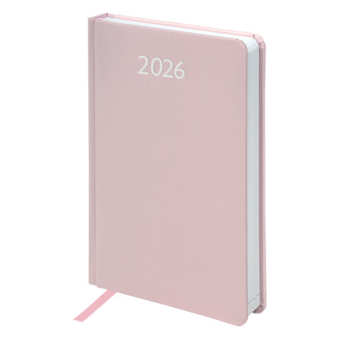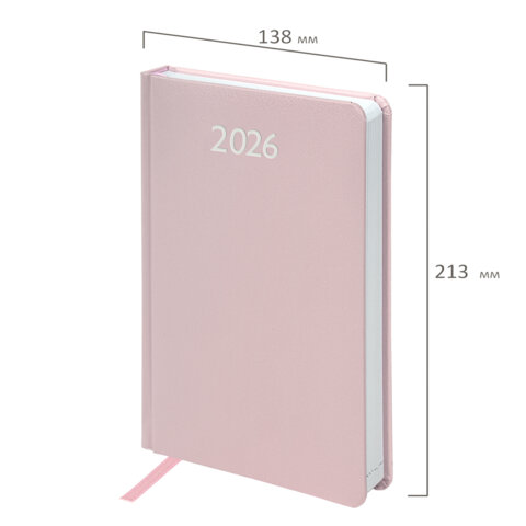 Ежедневник датированный 2026, А5, 138x213 мм, BRAUBERG "Profile", балакрон, светло-розовый, 117075