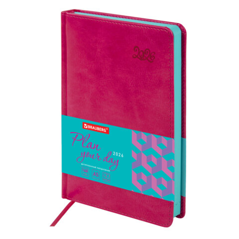 Датированный ежедневник серии "Raindow" BRAUBERG с яркой обложкой цвета "амарантовый маджента" предназначен для энергичных людей, стремящихся всё делать по максимуму, и эксцентричных натур, любящих нестандартные подходы к решению поставленных задач.