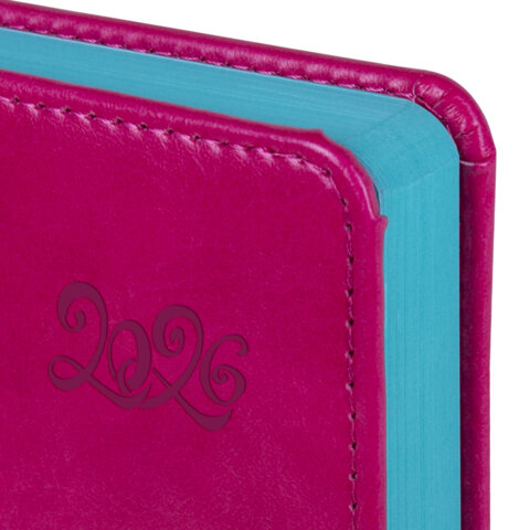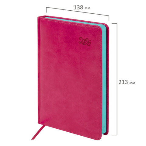 Ежедневник датированный 2026, А5, 138x213 мм, BRAUBERG "Rainbow", под кожу, розовый, 117078