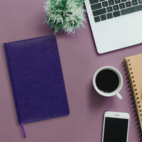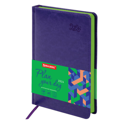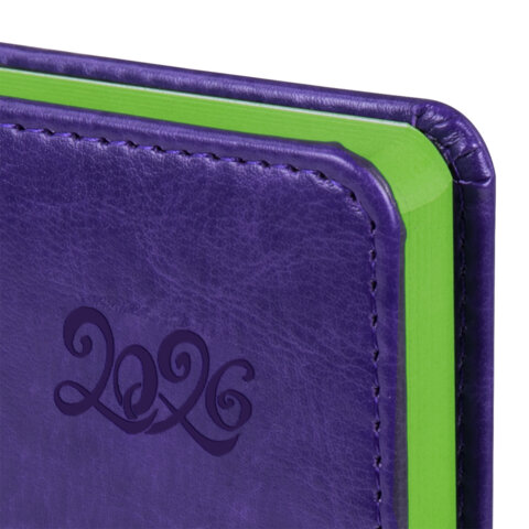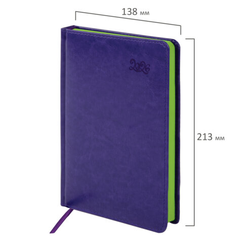 Ежедневник датированный 2026, А5, 138x213 мм, BRAUBERG "Rainbow", под кожу, сиреневый, 117080
