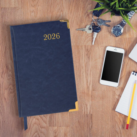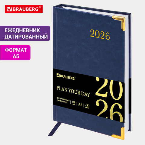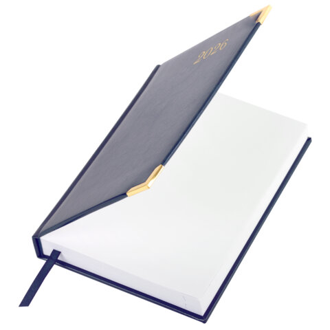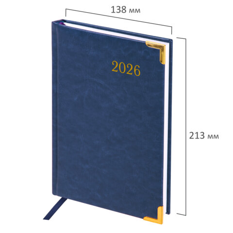 Ежедневник датированный 2026, А5, 138x213 мм, BRAUBERG "Senator", под кожу, синий, 117091