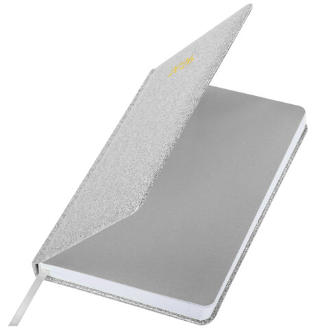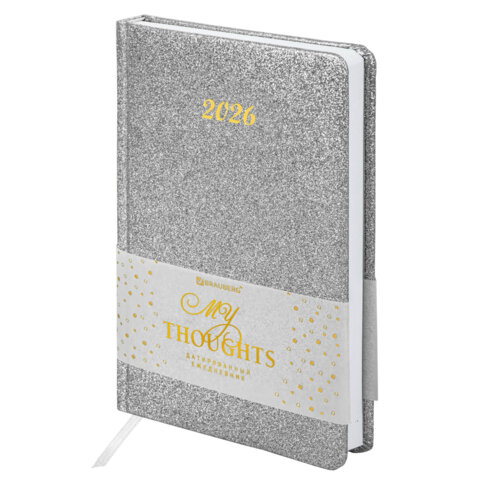 Ежедневник датированный 2026, А5, 138x213 мм, BRAUBERG "Sparkle", под кожу, блестки, серебристый, 117440