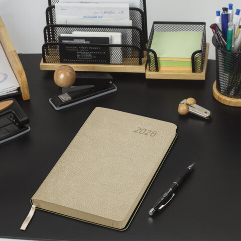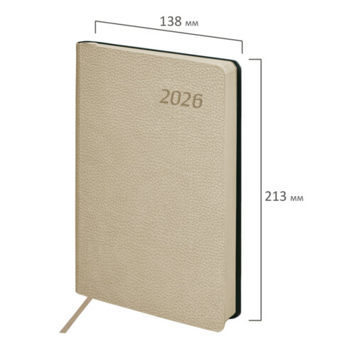 Ежедневник датированный 2026 А5 138x213 мм, BRAUBERG "Stylish", под кожу, гибкий, бежевый, 117104