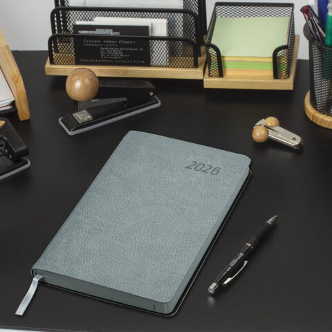 Ежедневник датированный 2026 А5 138x213 мм, BRAUBERG "Stylish", под кожу, гибкий, серо-голубой, 117105