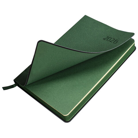 Ежедневник датированный 2026 А5 138x213 мм, BRAUBERG "Stylish", под кожу, гибкий, зеленый, 117102