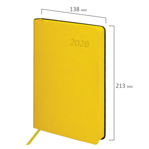 Ежедневник датированный 2026 А5 138x213 мм, BRAUBERG "Stylish", под кожу, гибкий, желтый, 117101