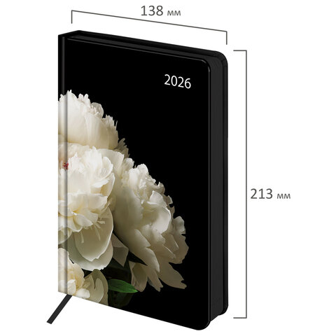 Ежедневник датированный 2026 А5 138x213 мм, BRAUBERG "Vista", под кожу, твердый, "Flowers", 117454