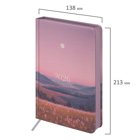 Ежедневник датированный 2026 А5 138x213 мм, BRAUBERG "Vista", под кожу твердый, "Serenity", 117459
