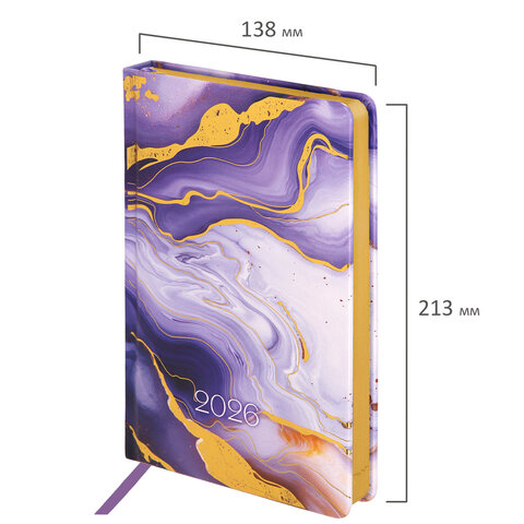 Ежедневник датированный 2026 А5 138x213 мм, BRAUBERG "Vista", под кожу твердый, "Texture", 117453