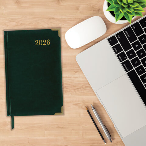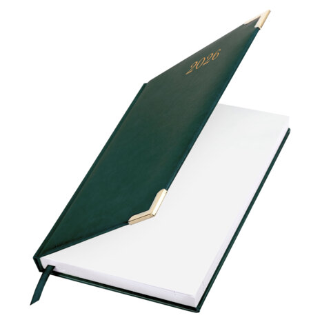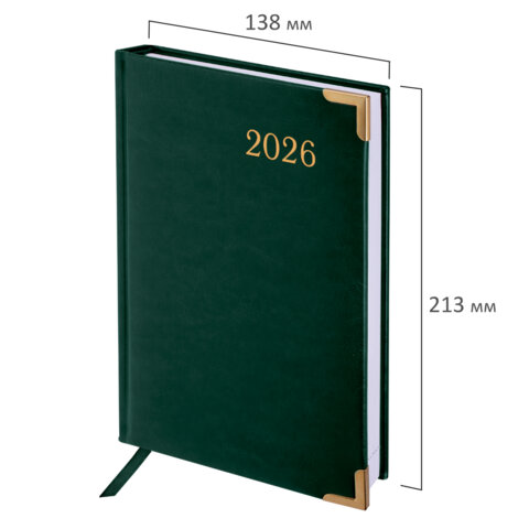 Ежедневник датированный 2026 А5 138x213мм BRAUBERG Senator, под кожу, зеленый, 117092