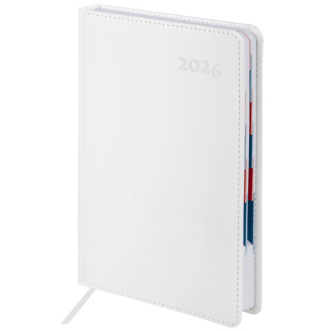 Ежедневник датированный 2026 А5 148х218 мм, GALANT "White", под кожу, белый, 117494
